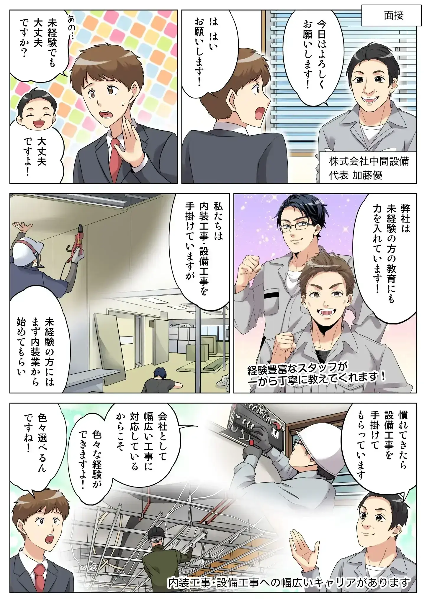未経験だからと諦めるのはもったいないです。中間設備では未経験からでも手に職をつけられるので、安心して応募してみてください!